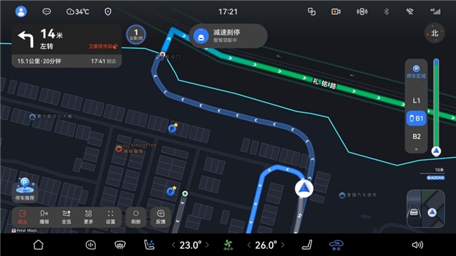 在寻找车位时用户操作更为便捷,用户可在地图界面直接点击目标车位或道路点,一键发起“车位级”导航,全程无需手动干预。同样支持车位到车位领航辅助,覆盖小区、商超、写字楼、充电站等常用场所,无论是通勤地库还是商场停车楼,均可实现无断点连贯体验,让行车更方便。